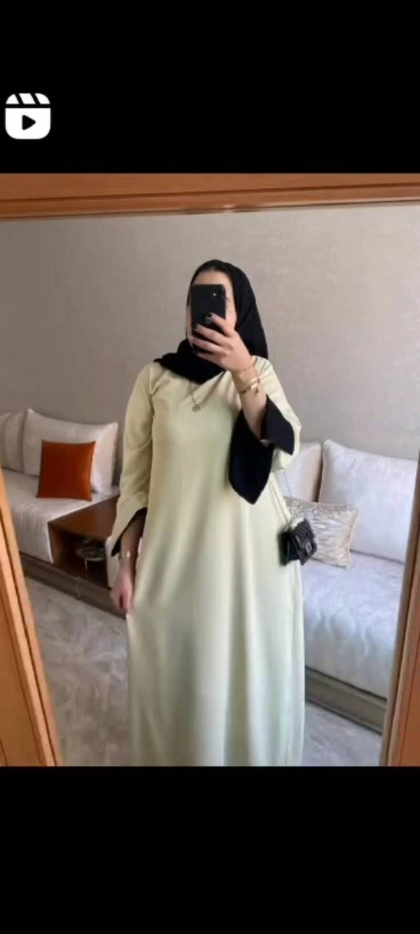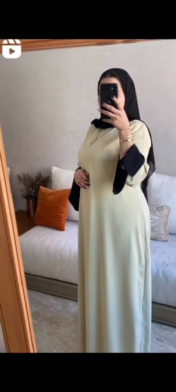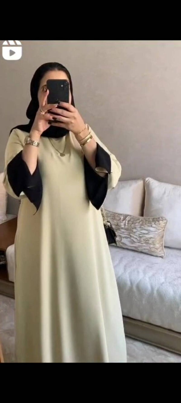 Abaya Aya couleur crème et manches en couleur noir existe en taille 1 et taille 2