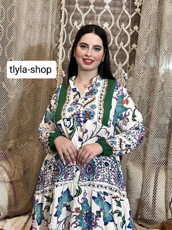 Robe d' été fleurie vert en taille 2 correspond à la taille xl et xxl