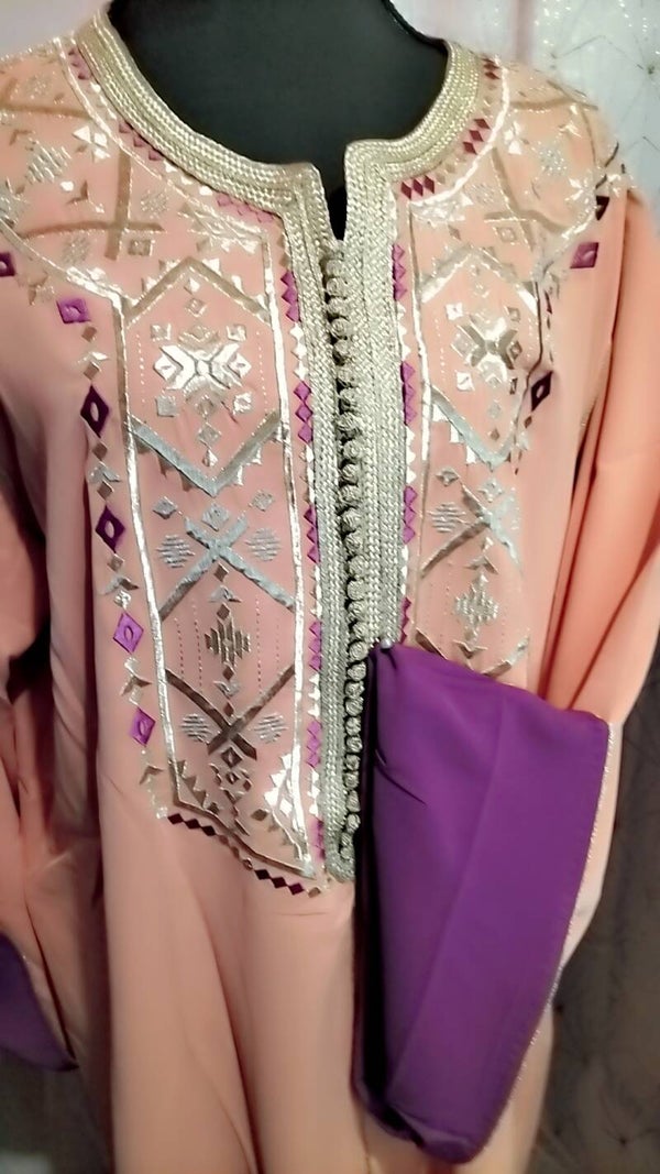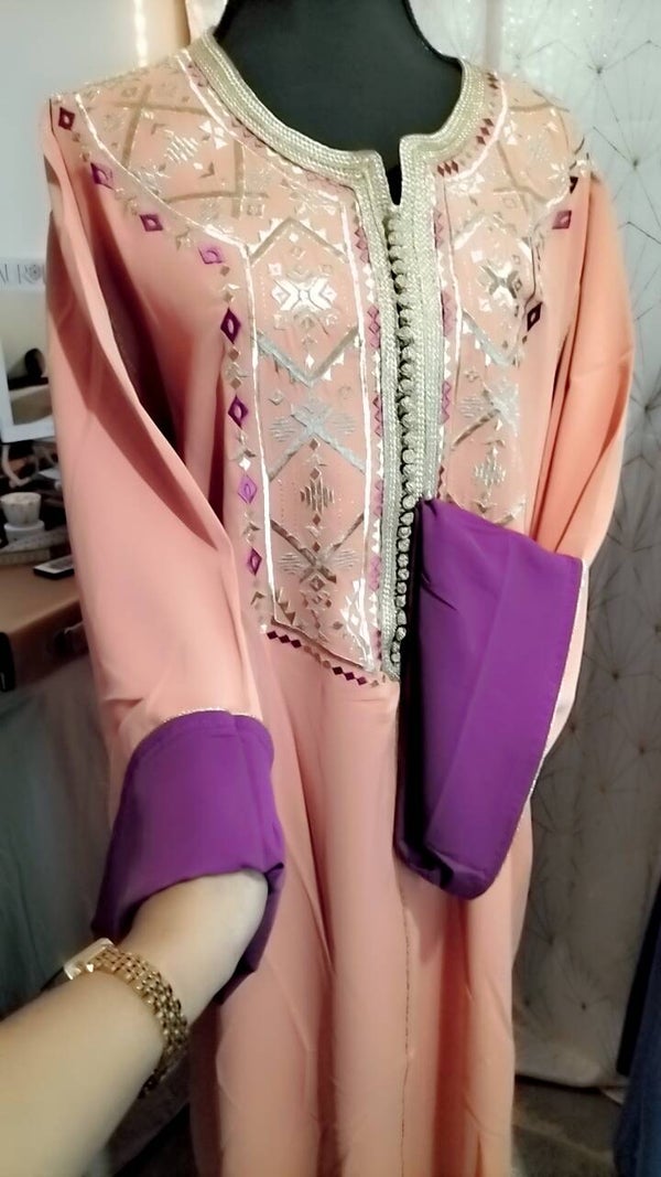 Caftan en crepe manches doublé violet en taille xxl ( 44)