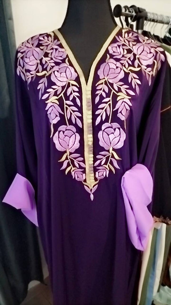 Gandoura en crepe violet manches double couleur Lila mesure de aisselles à aisselles bat-bat 61 idéal pour les tailles S, M, L et xl